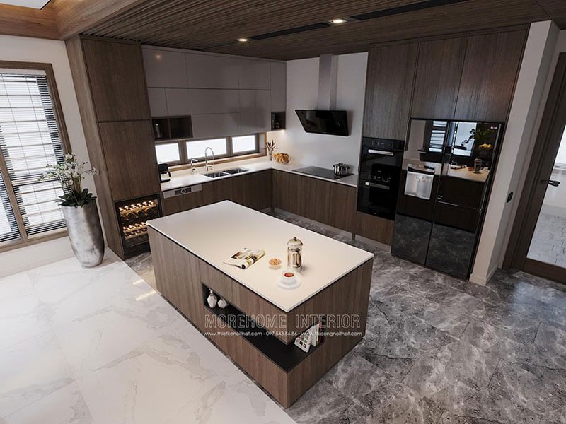 Mẫu tủ bếp đảo phong cách đương đại đẹp, sang trọng cho biệt thự, nhà phố.
