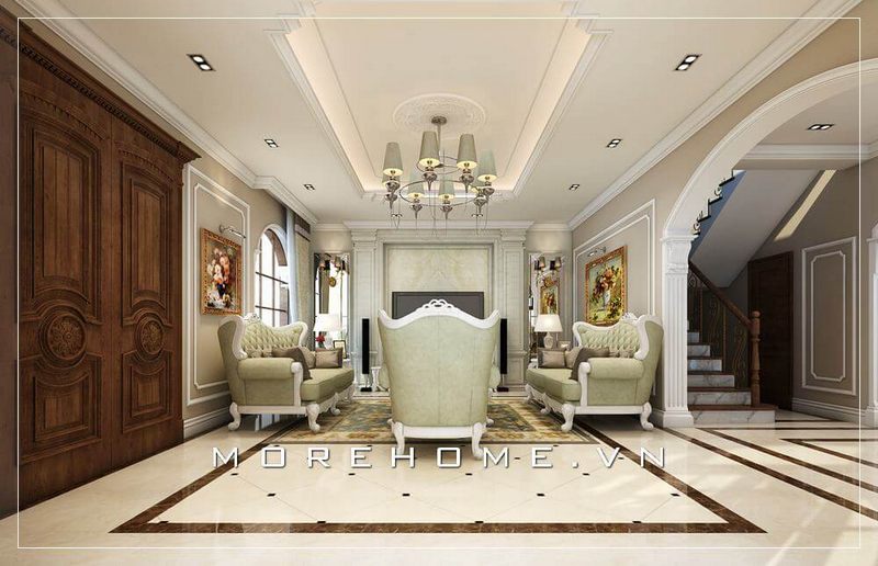 Mẫu nội thất sofa phòng khách sang trọng, đường nét tân cổ điển thể hiện đẳng cấp cho gia chủ