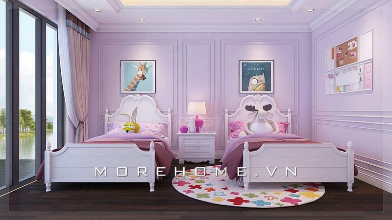 Mẫu thiết kế nội thất phòng ngủ 2 bé gái tại biệt thự cao cấp
