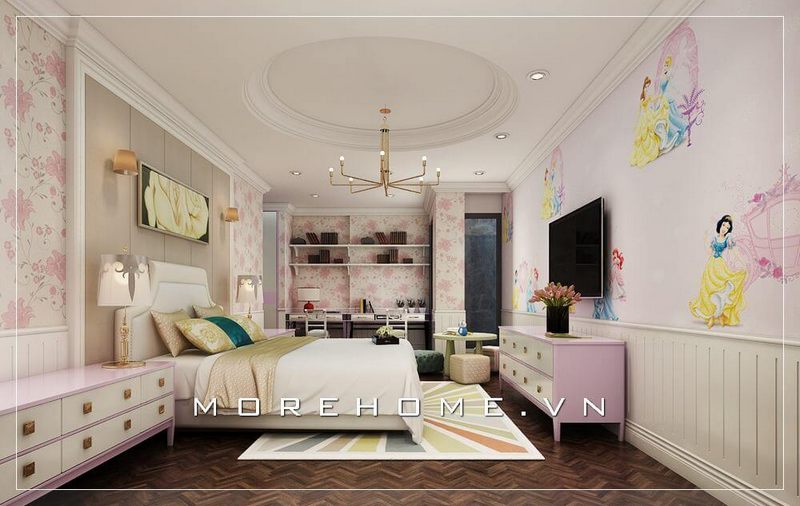 Mẫu thiết kế nội thất phòng ngủ bé gái đẹp và sang trọng tại biệt thự cao cấp phong cách tân cổ điển