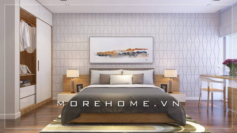 Trang trí nội thất phòng ngủ chung cư với mẫu tủ áo cánh mở hiện đại