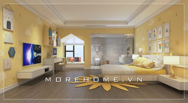 Chiêm ngưỡng mẫu thiết kế nội thất phòng ngủ hiện đại với màu vàng nhẹ đầy tinh tế tạo cảm giác thú vị hơn cho không gian con trẻ