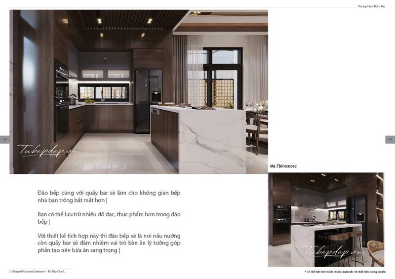Biệt thự, nhà phố cần thiết kế một phòng bếp với một quầy bar đảo bếp ốp đá trắng có thể thay thế cho bàn ăn nhỏ dành cho số lượng người ít.