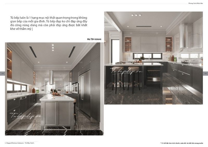 Biệt thự cao cấp Hải Phòng sẽ được trang trí nội thất phòng bếp theo phong cách đương đại, sang trọng, đẹp mắt với kiểu dáng chữ U.